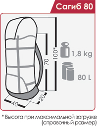 Конструкция: Два объёма, внутренняя перегородка между ними расстёгивается. // Каркас из дюралевых лат. // Анатомические плечевые лямки. // Мягкий съёмный анатомический пояс. // Грудная стяжка.