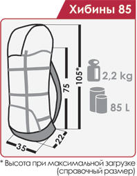 Конструкция: Два объёма, внутренняя перегородка между ними расстёгивается. // Регулируемая подвесная система. // Каркас в виде лат из алюминиевого сплава. // Плечевые лямки «анатомической» формы.