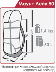 Конструкция: Два вертикальных объёма. // Второй объём в виде большого кармана, закрывающегося основным клапаном. // Регулируемая подвесная система. // Каркас из дюралевых лат. // Анатомические плечевые лямки.