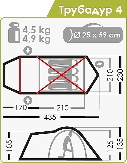 Габаритные размеры тента (l x b x h), см: 435 х 230 х 135