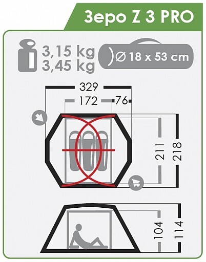 Развитие популярной серии Зеро, буква Z означает новую схему каркаса с тамбурной дугой и новую форму внутренней палатки с вертикальными стенками и увеличенным внутренним объемом.