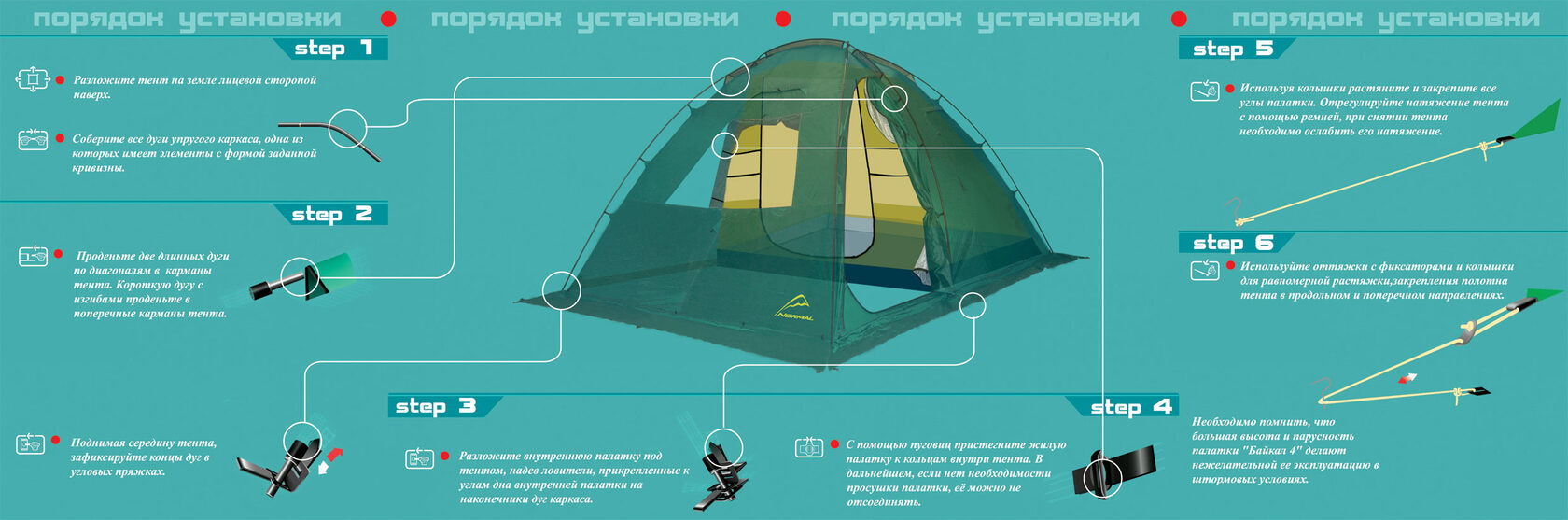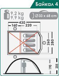 Назначение: Кемпинг, семейный отдых, длительные стоянки. Аналог «Байкала 3». Отличием является наличие дополнительного входа сзади, который можно зафиксировать параллельно земле с помощью стоек.