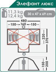Габаритные размеры тента (l x b x h), см: 480 х 370 х 200