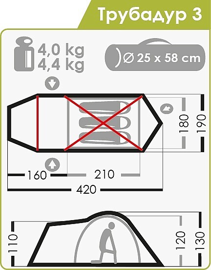 Габаритные размеры тента (l x b x h), см: 420 х 190 х 130