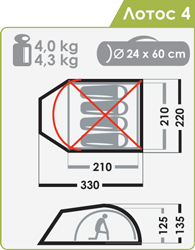 Габаритные размеры тента (l x b x h), см: 330 х 220 х 135