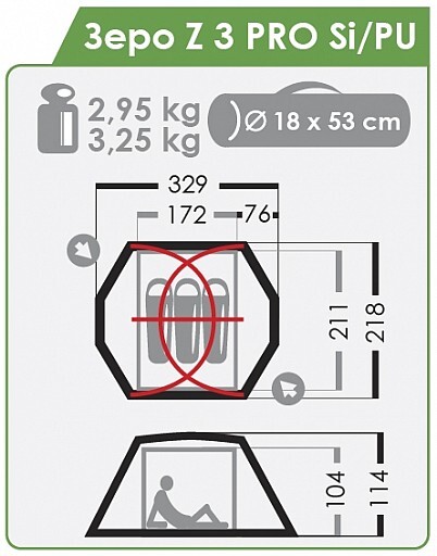 Легкая палатка Зеро Z 3 PRO Si/PU ветроустойчивость и влагостойкость