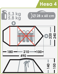 Габаритные размеры тента (l x b x h), см: 490 х 240 х 150