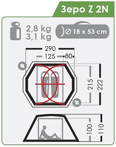 Развитие популярной серии Зеро, буква Z означает новую схему каркаса с тамбурной дугой и новую форму внутренней палатки с вертикальными стенками и увеличенным внутренним объемом.